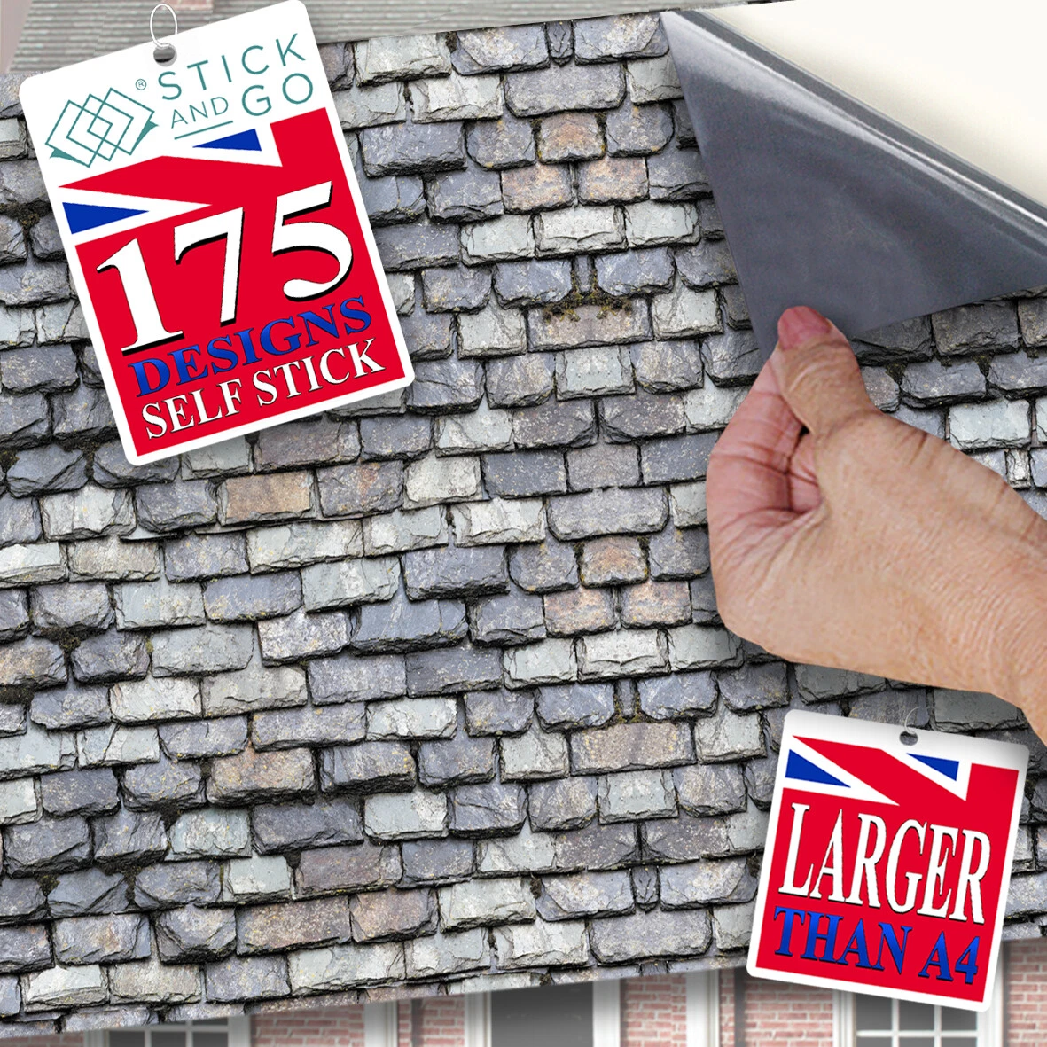 Dolls House Wallpaper Old Slate Roof 1 12 Stick On Vinyl Miniature Ebay